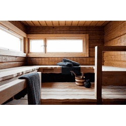 Використання природних високоякісних матеріалів у будівництві сауни і банного комплексу, в основному з дерева, фактура і тепло якого привносять всередину відчуття психологічного комфорту. Натуральні матеріали, тканини та використані для декору колірні відтінки доповнюють створене відчуття. Все тут призначене для прекрасного відпочинку з високим рівнем комфорту і в гармонії з собою.